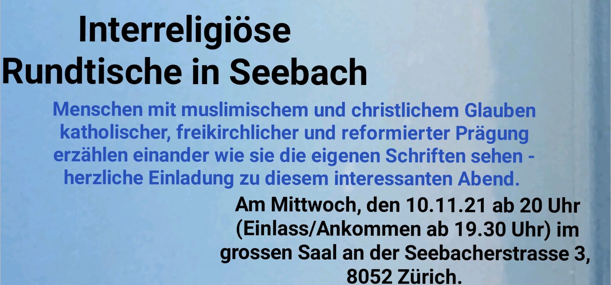 Ort: Pfarrsaal der Pfarrei Maria Lourdes, Seebacherstrasse 3, 8052 Zürich