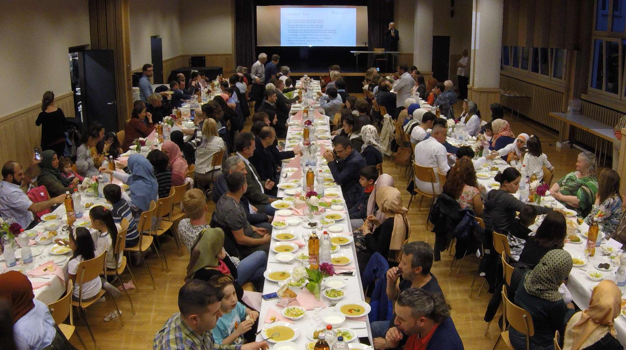 Zürich-Seebach, Muslime und Christen zum gemeinsamen Fastenbrechen im Monat Ramadan